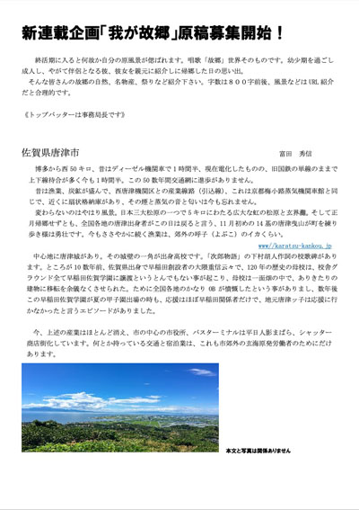 新連載企画「我が故郷」原稿募集開始!